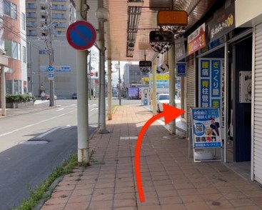(3)夜店通りを30メートルほど直進します。
